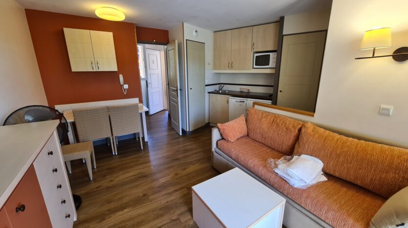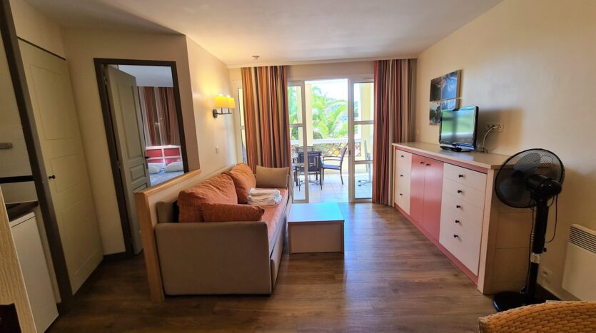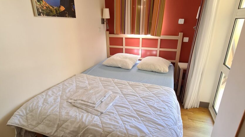 L’appartement, construit en 1990 et rénové en 2008, est en excellent état et dispose d’un séjour spacieux de 16 m², d’une chambre confortable, avec accès terrasse, d’une salle de bains et de WC indépendants. La cuisine aménagée et équipée, de type coin cuisine, est parfaite pour les petits repas en famille ou entre amis.