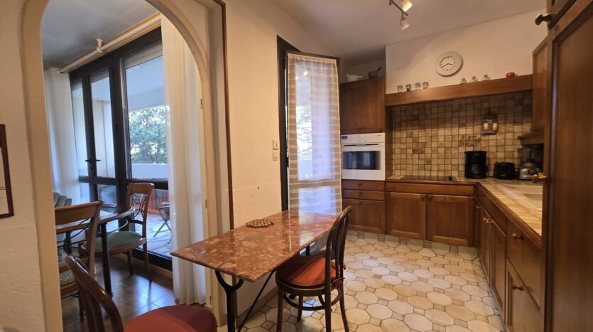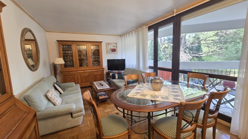 Cet appartement très chaleureux est composé d’un séjour de plus de 18 m², avec ses grandes baies vitrées en aluminium, double vitrage, d’une cuisine indépendante et aménagée, d’un cellier, de trois chambres dont deux avec placards, d’une salle de bains et de WC séparés.